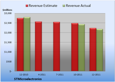 17 февраля 2012 Финансовое положение ST вызывает опасенияФранцузско-итальянская компания STMicroelectronics должна решительно действовать, если желает остановить опасное снижение прибыли и предотвратить возможность оказаться на периферии рынка полупроводников. Так считают финансовые аналитики фирмы Arete Research Services.П