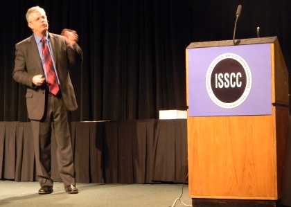 а международной конференции 2012 IEEE International Solid-State Circuits Conference, прошедшей с 19 по 23 февраля в Сан-Франциско (Калифорния), корпорация Intel представила много докладов и, в частности, впервые подробно описала технические характеристики Ivy Bridge — первых 22-нм процессоров, выполненных по трехзатворной технологии. Intel намеревается выпустить, по крайней мере, четыре основных варианта этого кристалла, в состав которого входит 1,4 млрд транзисторов, размещенных на площади 160 кв. мм. Ivy Bridge обеспечивает 20 каналов PCI Express Gen 3 и контроллер Displayport. Этот первый кристалл Intel, в который интегрирован интерфейс PCIe треьтего поколения, что сигнализирует о движении корпорации в сторону реализации технологий терагерцового масштабирования. Первый кристалл Ivy Bridge с кэшем до 8 Мбайт предназначен для настольных компьютеров, ноутбуков и серверов. Он оснащен контроллером памяти и графическим ядром, обновленным для поддержки DDR3L DRAM-памяти и графических интерфейсов прикладного программирования Microsoft DirectX 11.0. По словам Скотта Сиерса (Scott Siers), инженера Intel, Ivy Bridge — первый кристалл этой компании с функцией управления питанием 1,35-вольтовой DDR3L и DDR в режиме ожидания. Этот процессор поддерживает скорость передачи данных до 1600 мегапередач в секунду, а также обычную 1,5-вольтовую DDR3. Блок Displayport одновременно поддерживает три дисплея – один канал на 1,6 ГГц и два 2,7-ГГц канала. PCIe-приемник использует линейный эквалайзер с 32 уровнями управления усилением и передатчик с цифровым КИХ-фильтром. Блок PCIe также поддерживает тестирование джиттера, синхронизации и диапазон допустимых рабочих напряжений непосредственно на кристалле. Ядра х86-64 и графические ядра масштабируются таким образом, чтобы обеспечить скорость передачи данных с шагом в 100 и 50 МГц, соответственно. В своем отдельном выступлении Дади Перлмуттер (Dadi Perlmutter), директор отдела контроля производства Intel, рассказал о перспективном видении клиентов терагерцового класса. В настоящее время терагерцовые системы потребляют 3 кВт мощности, которую, однако, можно понизить до 20 Вт в течение 10 лет с помощью широкого ряда методов. К их числу относится оптимизация работы кристаллов вблизи пороговых напряжений. Кроме того, потребуется также реализовать маломощные внутренние и внешние межсоединения. Для реализации маломощной памяти необходима 3D-сборка. В этом направлении Intel работает совместно с компанией Micron. Предполагается 10-кратно увеличить ширину пропускания памяти, сократив потребление DDR3 не более 8 пкДж/бит вместо нынешних 50–75. Кроме того, блок регуляции напряжения следует поместить в самой ИС, т.к. индуктивность внешних проводников и даже корпуса слишком велика. По мнению Перлмуттера, для дальнейшего совершенствования компьютерных приложений потребуется еще 30 лет, а тем, кто считает, что в этой индустрии нечего делать, он порекомендовал не уходить в отставку.