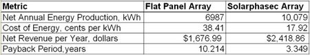 Sentinel на 40% эффективнее традиционых плоских солнечных батарей в течение дня, а среднегодовая эффективность выше аж на 60%. При равенстве площадей размещения Sentinel улавливает в 4 раза больше световой энергии, а цена киловатт-часа, вырабатываемого Sentinel, составляет лишь 18 центов, что вдвое дешевле, чем у обычный солнечных батарей и всего вдвое дороже энергии газовой электростанции.