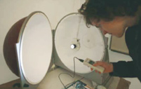С помощью фотометрической сферы измерим общий световой поток, испускаемый светодиодом. Затем положим исследуемую линзу на светодиод так, чтобы она покрывала все поверхности кроме излучающей. Ее завесим черным поглощающим цилиндром. Проведем повторный замер светового потока. Эффективность линзы равна отношению двух измеренных потоков, умноженному на 100, чтобы получить результат в процентах.